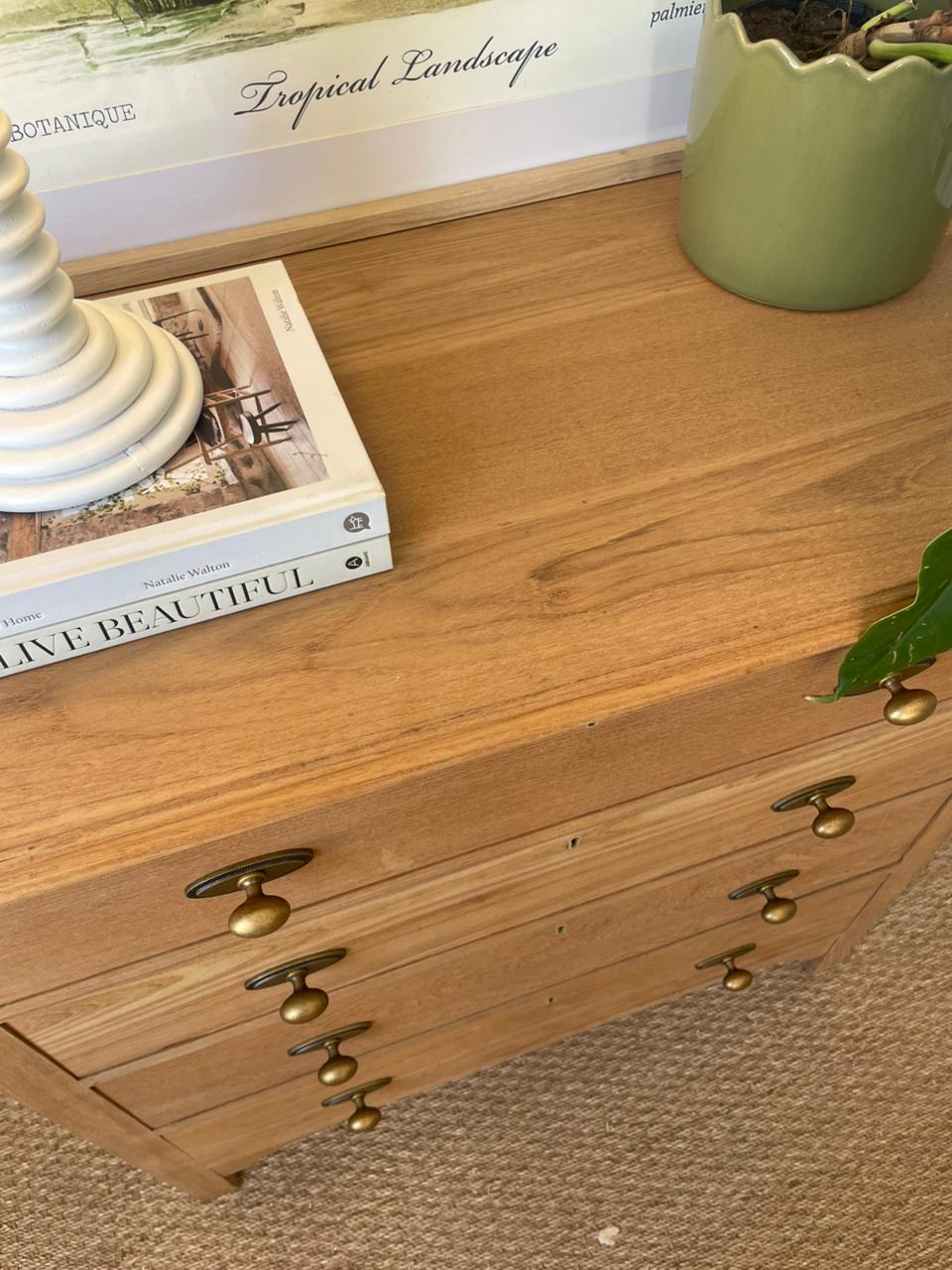 This beautifully restored Chelsea chest combines timeless elegance with practical functionality. Featuring four smooth-sliding drawers and sturdy solid construction, it's the perfect addition to any room. The solid brass handles add a touch of sophistication and durability. Versatile enough to serve as a nursery compactum, entryway storage, or bedroom dressing table, this chest brings both style and storage to your home.
